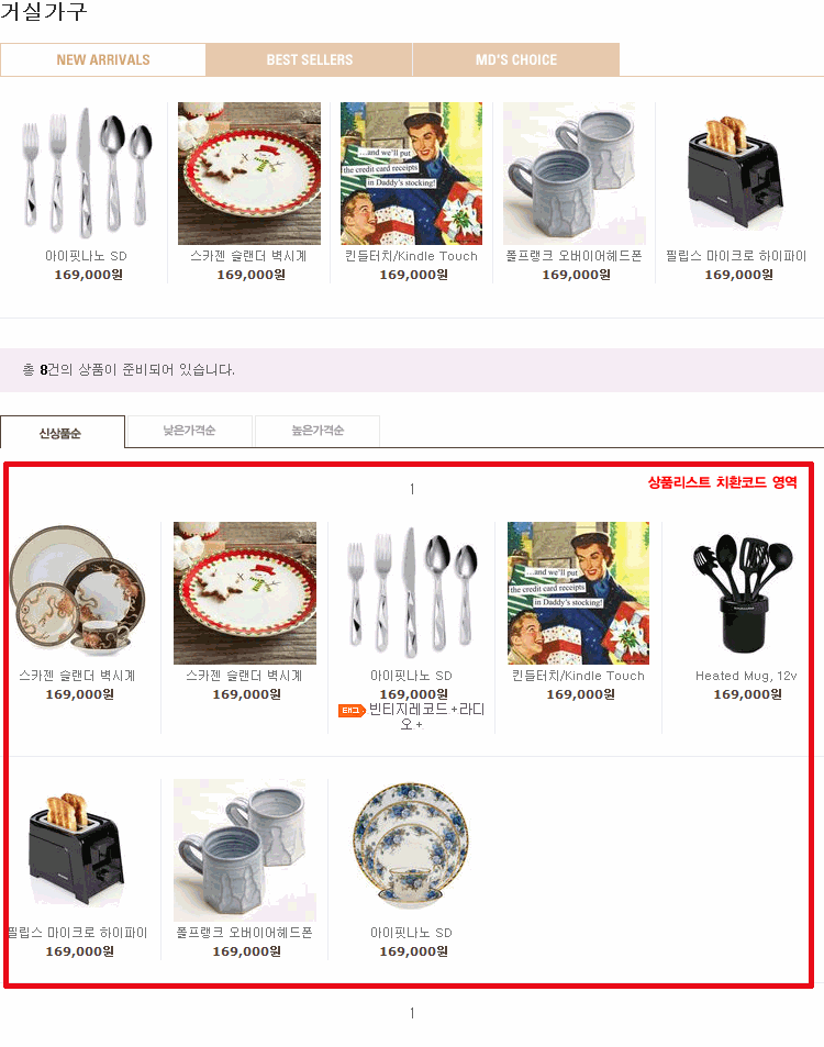 상품리스트에 해당하는 치환코드부분을 수정하실 수 있습니다.